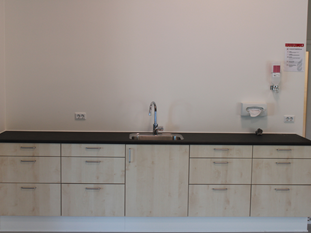 Ønsker du allerede fra start at få et lille "bryggers" i institutionen med plads til vaskemaskine og tørretumbler, er dette møbel også noget vi kan montere for dig.