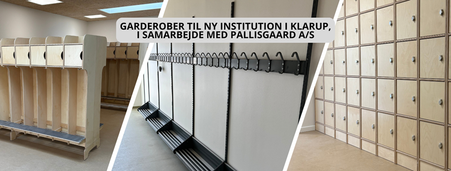 Garderober, både fin- og grovgarderober, til ny institution i Silkeborg Kommune.