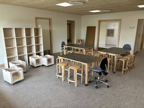 Hvalsø Børnehus, et af Lejre Kommunes nyeste skud på stammen, kan rumme op til 130 børn fordelt på vugge- og børnehavestuer. Institutionen har store, flotte og lyse lokaler, som vi har haft fornøjelsen at levere løst inventar til.
