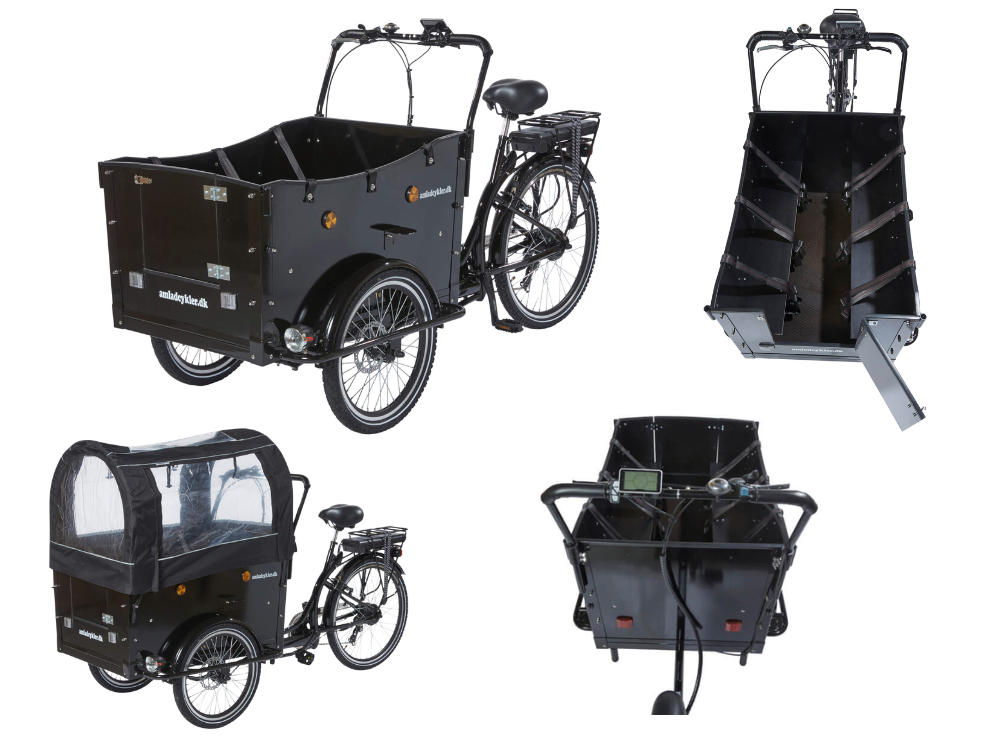 Denne smarte el-ladcykel med plads til 6 børn har:
