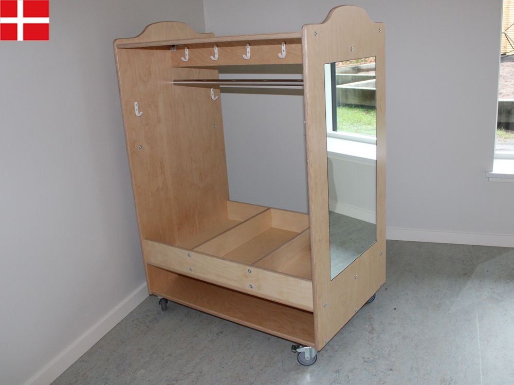 Fin, lav vogn til opbevaring af udklædningstøj.